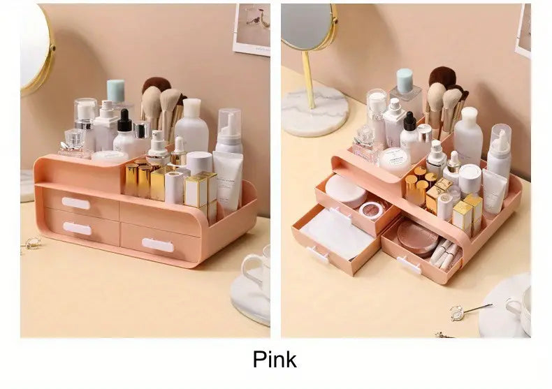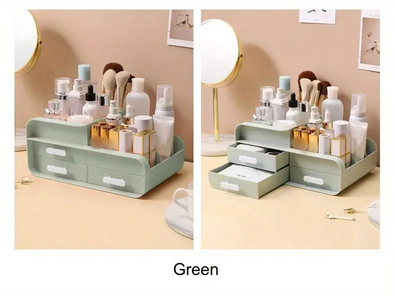 Transform your beauty routine with our innovative Makeup & Skin Care Drawer Organizer. Designed to elegantly store your favorite products, this organizer is perfect for keeping everything from perfumes and eyeshadows to lotions, lipsticks, nail polish, and even jewelry neatly arranged and easily accessible.